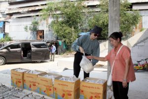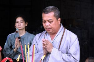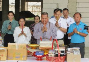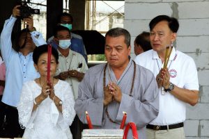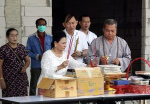 “ป้าเชง”บุญไทย ตั้งเด่นไชย ประธานในพิธีบรรจุ พระโพธิสัตว์กวนอิม และเหรียญเทพเจ้าไฉ่ซิ้งเอี้ย และพระเครื่อง จำนวน 84,000 องค์ ตามพระธรรมขันธ์ ณ วิหารพระโพธิสัตว์กวนอิม กม.30 บางเมฆขาว