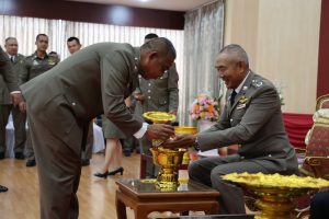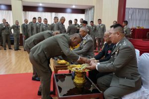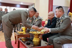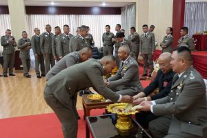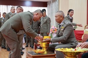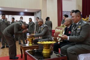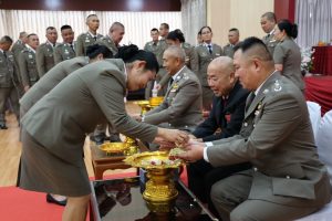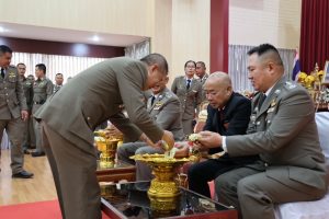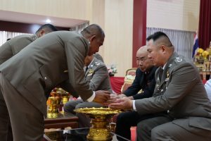ตำรวจ ภ.จว.สมุทรปราการ จัดพิธีรดน้ำขอพร ผบช.ภาค 1 ผบก.ภ.จว.สมุทรปราการ และประธานที่ปรึกษา กต.ตร.จังหวัดสมุทรปราการ ในโอกาสเทศกาลประเพณีสงกรานต์ 2566 เพื่อเป็นสิริมงคล