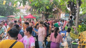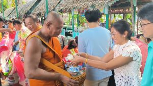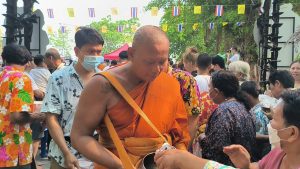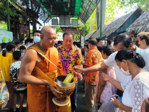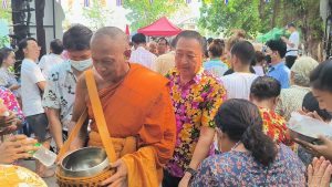 เมื่อเวลา 09.30 น.วันที่13 เมษายน 2566 ซึ่งถือเป็นวันขึ้นปีใหม่ของไทย พุทธศาสนิกชนชาวบางเสาธงร่วมพิธีตักบาตรข้าวสารอาหารแห้งกับพระสงฆ์และสามเณรที่อยู่ในวัดศรีวารีน้อย โดยมีพระครูปลัดสุวัฒนกวีคุณ เจ้าอาวาสวัดศรีวารีน้อย เป็นประธานฝ่ายสงฆ์ โดยได้รับเดินบิณฑบาตจากโบสถ์ลงมายังตลาดริมน้ำ และเดินวนรอบวัดกลับมายังศาลาการเปรียญ ทั้งนี้พุทธศาสนิกชนยังได้ร่วมทำบุญถวายภัตตาหารเพลแต่ละภิกษุสงฆ์และสามเณร ร่วมรับฟังเทศนาจากพระคุณเจ้า ร่วมสักการะหลวงพ่อเสือศักดิ์สิทธิ์ประจำวัดร่วมทำบุญสังฆทาน ทำบุญผ้าป่าลอยฟ้า สักการะองค์หลวงปู่ทวด สักการะไอ้ไข่ และสิ่งศักดิ์สิทธิ์ที่ประจำวัดบรรยากาศอบอวนไปด้วยกลิ่นอายแห่งความสุขและ สืบสานวัฒนธรรมที่ดีของไทย