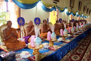 พระภิกษุสงฆ์ทรงสมณศักดิ์ จำนวน 16 รูป อาทิ เช่น พระครูวิมลศุภการ ดร. เจ้าคณะอำเภอเมือง เจ้าอาวาสวัดด่านสำโรง พระเดชพระคุณพระวชิรธรรมวิธาน เจ้าคณะอำเภอบางบ่อ เจ้าอาวาสวัดสุคันธาวาส พระเดชพระคุณพระมงคลธรรมธัช เจ้าคณะอำเภอบางเสาธง เจ้าอาวาสวัดศิริเสาธง พระมหาวิฑูร ธมฺมโชโต ดร. เจ้าคณะอำเภอพระสมุทรเจดีย์ เจ้าอาวาสวัดใหญ่ พระครูภาวนาสมณคุณ เจ้าคณะตำบลท้ายบ้าน เจ้าอาวาสวัดชัยมงคล พระครูศรีภาวนาวิสุทธิคุณ ดร. เจ้าคณะตำบลสำโรงเหนือ เจ้าอาวาสวัดแพรกษา พระมหาประเสริฐ มหานาโค เจ้าคณะตำบลปากน้ำ ผู้ช่วยเจ้าอาวาสวัดกลางวรวิหาร โดยมี คุณเกษมศักดิ์ นุชประมูล เจ้าของวัดคนแรก นายณรงค์ บุญช่วย ที่ปรึกษานายกเทศมนตรีตำบลบางปู น.ส.ประภารัตน์ แจ้งสุทิมล สมาชิกสภาเทศบาลตำบลบางปู “เจ๊แมว” มะลิวรรณ ตั้งเด่นไชย กรรมการเหล่ากาชาดจังหวัดสมุทรปราการ ผู้ใหญ่ณัฐวุฒิ แจ้งสุทิมล ผู้ใหญ่บ้านหมู่ 3 ตำบลท้ายบ้านใหม่ นางสาววันเพ็ญ สุวรรณผู. รองผู้อำนวยการโรงเรียนหาดอมราอักษรลักษณ์วิทยา ตลอดจนคณะกรรมการ ไวยาวัจกร และศิษยานุศิษย์วัดพุทธภาวนาราม ร่วมกันถวายเครื่องไทยธรรม และภัตตาหารเพล แด่พระภิกษุสงฆ์ทรงสมณศักดิ์ พระเถรานุเถระ จากวัดต่างๆ และคณะสงฆ์ วัดพุทธภาวนาราม ที่ร่วมเจริญพระพุทธมนต์ และสวดมาติกาบังสุกุล รวมทั้งสิ้น 75 รูป โดยภายในงานศิษยานุศิษย์วัดพุทธภาวนาราม ยังได้นำอาหารคาวหวาน และน้ำดื่ม มาเปิดเป็นโรงทานให้ผู้ที่มาร่วมงานได้รับประธานกัน อีกด้วย