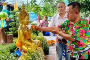สมาคมชาวใต้สมุทรปราการ จัดกิจกรรมสืบสานประเพณีวันสงกรานต์ รดน้ำดำหัวขอพรผู้สูงอายุ ประจำปี 2566