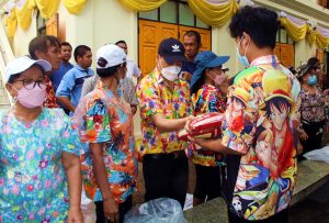 เจ้าอาวาสวัดพุทธภาวนาราม มอบข้าวสารให้กับประชาชน กลุ่มผู่เปาะบาง จำนวน 1,500 ถุง เพื่ออุทิศถวายแด่หลวงพ่อพระอธิการสำเนา อดีตเจ้าอาวาสวัดพุทธภาวนาราม เนื่องในโอกาสครบรอบมรณกาลครบ 1 ปี