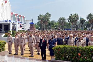 โดยมี นายศุภมิตร ชิณศรี ผู้ว่าราชการจังหวัดสมุทรปราการ นางสาวนันทิดา แก้วบัวสาย นายกองค์การบริหารส่วนจังหวัดสมุทรปราการ นางประภาพร อัศวเหม นายกเทศมนตรีนครสมุทรปราการ ดร.วิชัย จันทร์จำรูญ ประธานสภาวัฒนธรรมจังหวัดสมุทรปราการ พล.ต.ต.วสันต์ บุญเจริญ และคณะแม่บ้านทหารเรือ ร่วมกิจกรรมเทิดพระเกียรติ