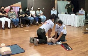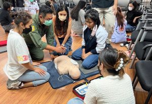 โดยเป็นการบรรยายพร้อมกับการฝึกทดลองปฏิบัติกับหุ่นจำลอง เช่น การประเมินอาการผู้ป่วย การช่วยปฐมพยาบาลเบื้องต้น การแจ้งเหตุ 1669 การช่วยเหลือผู้ป่วยที่หยุดหายใจ (CPR) การฝึกช่วยเหลือผู้ป่วยด้วยเครื่องกระตุกหัวใจไฟฟ้า ชนิดอัตโนมัติ (AED) การเคลื่อนย้ายผู้ป่วย-ผู้บาดเจ็บด้วยมือเปล่า และการช่วยเหลือผู้ที่อยู่ในภาวะสิ่งแปลกปลอมเข้าไปติดค้างอยู่ในลำคอหรือกีดขวางหลอดลม (Choking) ซึ่งจะทำให้ได้รับความรู้และตระหนังถึงความสำคัญของการเรียนรู้การปฐมพยาบาล เพื่อนำไปปฏิบัติช้ได้จริงในชีวิตประจำวัน ต่อไป