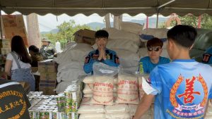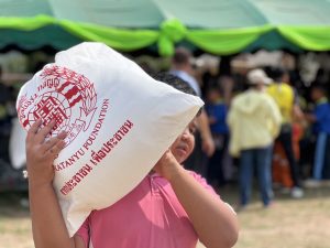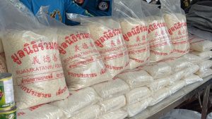 มูลนิธิร่วมกตัญญู โดย ดร.รัตนา สมสกุลรุ่งเรือง ประธานมูลนิธิฯ พร้อมด้วย คุณสมศักดิ์ ปาลวัฒน์ ผจก.มูลนิธิฯ , เหล่าศิลปินดาราของร่วมกตัญญู, เจ้าหน้าที่-อาสาสมัครมูลนิธิฯ และเครือข่ายรวงข้าว สายเหนือ