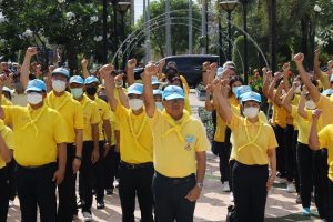 นายสมศักดิ์ แก้วเสนา นายอำเภอเมืองสมุทรปราการ กล่าวว่า ด้วยสำนึกในพระมหากรุณาธิคุณที่ พระบาทสมเด็จพระเจ้าอยู่หัว พระราชทานโครงการจิตอาสาพระราชทานตามแนวพระราชดำริ “เราทำความ ดี ด้วยหัวใจ” ด้วยทรงมุ่งหวังให้ พสกนิกรทุกหมู่เหล่า มีความสมัครสมาน สามัคคี ร่วมมือร่วมใจ ประกอบกิจกรรมสาธารณะเพื่อประโยชน์สุขของชุมชนส่วนรวม โดยไม่หวังสิ่งตอบแทนเพื่อให้เกิดความรัก ความผูกพันใน 4 สถาบันหลักของชาติ คือ สถาบันชาติ สถาบันศาสนา สถาบันพระมหากษัตริย์ และประชาชน