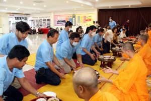 โดยได้นิมนต์พระภิกษุสงฆ์ จากวัดพระธรรมกาย จำนวน 9 รูป นำโดย พระวีรวุฒน์ มนวีโร หรือ “พระอาจารย์ มนวีโร” (อ่านว่า มะนะวีโร)พระนักเทศน์ สอนธรรมะเพื่อฟื้นฟูพระพุทธศาสนาและศีลธรรมโลก เจริญพระพุทธมนต์ นายไตรภพ ดร.ศิริภัสสร ครอบครัวปิยนันทวารินทร์ พร้อมด้วยคณะผู้บริหาร พนักงาน บริษัท ปิยะซันต์ อินเตอร์กรุ๊ป จำกัด และกลุ่ม บริษัทในเครือฯ ร่วมกัน ถวายภัตตาหาร จตุปัจจัยเครื่องไทยธรรม แด่พระภิกษุสงฆ์ พระสงฆ์ให้ศีล กรวดน้ำ รับพร พระอาจารย์ มนวีโร” ประพรมน้ำพระพุทธมนต์ เพื่อความเป็นสิริมงคล