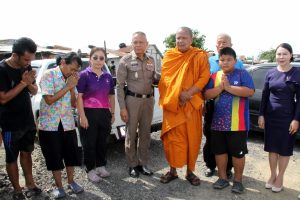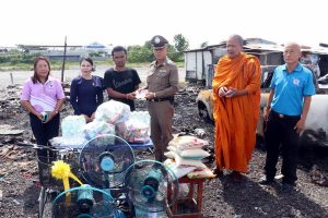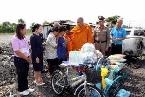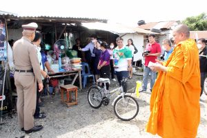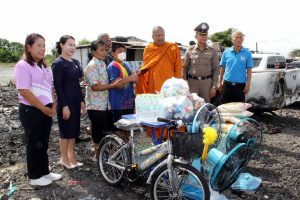 พระครูแจ้ ลงพื้นที่ ต.บางเพรียง มอบเครื่องอุปโภค-บริโภค รถจักรยาน พัดลม และเงินช่วยเหลือครอบครัวที่บ้านถูกไฟไหม้