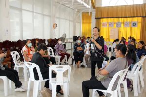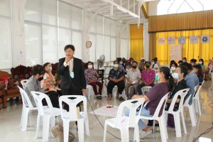 โดยมี นางสาวไพเราะ แจ่มจักษุ ผู้รับผิดชอบโครงการส่งเสริมสนับสนุนกระบวนการเรียนรู้การจัดการสุขภาวะประชากรกลุ่มเปราะบาง นายสิทธิพงษ์ พลอยงาม พม.สป.และทีมพี่เลี้ยง จากหน่วยพัฒนาคุณภาพชีวิตประชากรกลุ่มเปราะบางจังหวัดสมุทรปราการ ร่วมเป็นวิทยากร ภายใต้การสนับสนุนจากสำนักงานกองทุนสนับสนุนการสร้างเสริมสุขภาพ (สสส.)