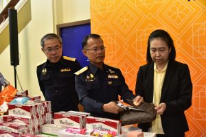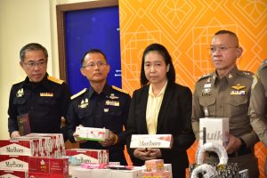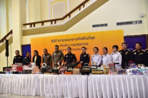 นายพงศ์เทพ บัวทรัพย์ รองอธิบดีกรมศุลกากร รักษาการในตำแหน่ง ที่ปรึกษาด้านพัฒนาระบบควบคุมทางศุลกากร เปิดเผยว่า กรมศุลกากร ร่วมกับ กองบังคับการปราบปรามการกระทำความผิดเกี่ยวกับอาชญากรรมทางเศรษฐกิจ (ปอศ.) และกองบังคับการตำรวจสืบสวนสอบสวนอาชญากรรมทางเทคโนโลยี (สอท.) ได้จับกุมและตรวจยึดของกลาง อาทิ เครื่องสำอาง บารากู่ บุหรี่ บุหรี่ไฟฟ้า สินค้าละเมิดลิขสิทธิ์ สินค้าละเมิดเครื่องหมายการค้า และอื่น ๆ จำนวนทั้งสิ้น 1,295,875 ชิ้น คิดเป็นมูลค่าทั้งหมด 57,349,633 บาท โดยเป็นการกระทำความผิดฐาน “มีไว้ในครอบครองซึ่งบุหรี่ไฟฟ้า ที่เป็นสิ่งของต้องห้ามนำเข้ามาในราชอาณาจักร ช่วยซ่อนเร้น ช่วยจำหน่าย ช่วยพาเอาไปเสีย ซื้อ จำนำ หรือรับไว้โดยประการใด ซึ่งสิ่งของอันตนรู้ว่าเป็นของที่ยังมิได้ผ่านพิธีการศุลกากร หรือเคลื่อนย้ายของออกไปจากยานพาหนะ คลังสินค้าทัณฑ์บน โรงพักสินค้า ที่มั่นคง ท่าเรือรับอนุญาต หรือเขตปลอดอากร โดยไม่ได้รับอนุญาตจากพนักงานศุลกากร” อีกทั้ง สินค้าบางรายการมีการลอกเลียนแบบและมีการลักลอบนำเข้ามาในราชอาณาจักร ถือเป็นการละเมิดทรัพย์สินทางปัญญา โดยประเทศไทยได้มีข้อตกลงที่จะร่วมมือในการป้องกันและปราบปรามการลักลอบนำเข้าสินค้าที่มีการละเมิดทรัพย์สินทางปัญญา เพื่อให้เกิดการยอมรับในระดับสากล รวมถึงสร้างมาตรฐานการปกป้องสังคม เพื่อประโยชน์ทางการค้าของผู้ประกอบการที่สุจริตและประชาชนทั่วไป