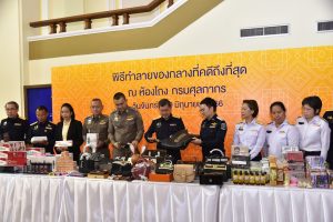 ที่คดีถึงที่สุดไปทำลาย พร้อมด้วยนายถวัลย์ รอดจิตต์ ผู้อำนวยการกองสืบสวนและปราบปราม พ.ต.อ.วงศ์ปกรณ์ เปรมกุลนันท์ รอง ผบก. กองบังคับการปราบปรามการกระทำความผิดเกี่ยวกับอาชญากรรมทางเศรษฐกิจ (ปอศ.) พ.ต.ต. สตพงษ์ เชื้อมหาวรรณ ผู้อำนวยการส่วนคดีทรัพย์สินทางปัญญา 3 กรมสวบสวนคดีพิเศษ