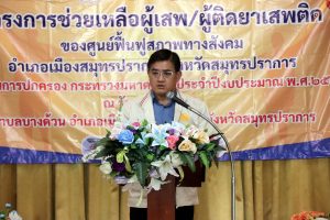 สำหรับ โครงการช่วยเหลือผู้เสพ/ผู้ติดยาเสพติด ของศูนย์ฟิ้นฟูสภาพทางสังคมอำเภอเมืองสมุทรปราการ ในครั้งนี้ สืบเนื่องจาก ศูนย์ปฏิบัติการป้องกันและปราบปรามยาเสพติดอำเภอเมืองสมุทรปราการ ได้สำรวจและรวบรวมรายชื่อผู้เสพยาเสพติดและผู้ค้ายาเสพติด โดยผู้เสพ/ผู้ติดยาเสพติดเป็นบุคคลที่จะต้องได้รับความช่วยเหลืออย่างเร่งด่วน โดยยึดหลัก “ผู้เสพ คือผู้ป่วยที่ต้องได้รับการบำบัดรักษา และป้องกันไม่ให้กลุ่มเสี่ยงเข้าไปเป็นเหยื่อของยาเสพติด” ซึ่งจากสถานการณ์การแพร่ระบาดของยาเสพติดในพื้นที่อำเภอเมืองสมุทรปราการ พบว่า มีเยาวชนและประชาชนจำนวนไม่น้อยที่เข้าไปยุ่งเกี่ยวกับยาเสพติด ดังนั้นเพื่อเป็นการช่วยเหลือผู้ติดยาเสพติดในพื้นที่ ศูนย์ปฏิบัติการป้องกันและปราบปรามยาเสพติดอำเภอเมืองสมุทรปราการ จึงได้จัดโครงการช่วยเหลือผู้เสพ/ผู้ติดยาเสพติดของศูนย์ฟื้นฟูสภาพทางสังคมอำเภอเมืองสมุทรปราการ ประจำปีงบประมาณ พ.ศ. 2566 จำนวน 5 รุ่น รุ่นละ 50 คน โดยมีวัตถุประสงค์เพื่อให้ความช่วยเหลือผู้เสพ/ผู้ติดยาเสพติดในพื้นที่หมู่บ้าน/ชุมชน ด้วยการเสริมสร้างความแข็งแรงของสุขภาพร่างกายและจิตใจ รวมทั้งปรับเปลี่ยนทัศนคติสร้างความเข้าใจ โดยศูนย์ฟื้นฟูสภาพทางสังคมอำเภอ และเพื่อให้ความช่วยเหลือผู้เสพ/ผู้ติดยาเสพติดในพื้นที่ ที่ได้จากการร้องขอจากผู้ปกครอง หรือแจ้งเบาะแสจากประชาชน ให้ได้เข้ารับการช่วยเหลือโดยศูนย์ฟื้นฟูสภาพทางสังคมอำเภอ รวมทั้งเพื่อส่งเสริมให้ผู้เสพ/ผู้ติดยาเสพติดมีส่วนร่วมในการแก้ไขปัญหายาเสพติด และป้องกันผู้เสพ/ผู้ติดยาเสพติดที่อาจมีอาการทางจิตเวช ไม่ให้ก่อเหตุใช้ความรุนแรงในพื้นที่หมู่บ้าน/ชุมชน ได้