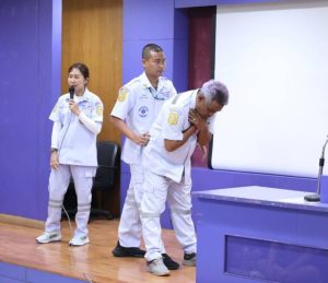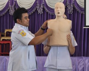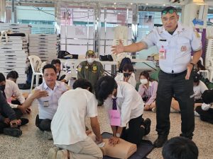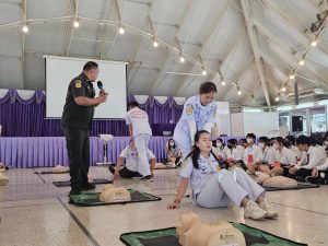 โดยเป็นการบรรยายพร้อมกับการฝึกทดลองปฏิบัติกับหุ่นจำลอง เช่น การประเมินอาการผู้ป่วย, การช่วยปฐมพยาบาลเบื้องต้น, การแจ้งเหตุ 1669, และการช่วยเหลือผู้ป่วยที่หยุดหายใจ (CPR), การใช้เครื่องกระตุกหัวใจอัตโนมัติ (AED), การเคลื่อนย้ายผู้ป่วย – ผู้บาดเจ็บด้วยมือเปล่าอย่างถูกวิธี รวมถึงการช่วยเหลือผู้ที่อยู่ในภาวะสิ่งแปลกปลอมเข้าไปติดค้างอยู่ในลำคอหรือกีดขวางหลอดลม (Choking) ซึ่งจะทำให้ได้รับความรู้และตระหนักถึงความสำคัญของการเรียนรู้การปฐมพยาบาล เพื่อนำไปปฎิบัติใช้ได้จริงในชีวิตประจำวันหากมีเหตุการณ์ฉุกเฉินเกิดขึ้น