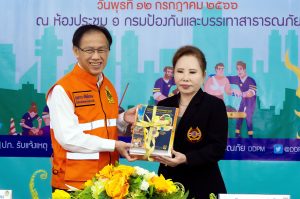 วันนี้ (12 ก.ค. 66) เวลา 13.30 น.ที่ห้องประชุม 1กรมป้องกันและบรรเทาสาธารณภัย ถนนอู่ทองนอก แขวงวชิรพยาบาล เขตดุสิต กรุงเทพมหานคร นายบุญธรรม เลิศสุขีเกษม อธิบดีกรมป้องกันและบรรเทาสาธารณภัย (ปภ.) และ ดร. รัตนา สมสกุลรุ่งเรือง ประธานกรรมการมูลนิธิร่วมกตัญญู ร่วมพิธีลงนามบันทึกความเข้าใจว่าด้วยความร่วมมือ ในการป้องกันและบรรเทาสาธารณภัย ระหว่าง กรมป้องกันและบรรเทาสาธรณภัย กับ มูลนิธิร่วมกตัญญู โดยมี ดร. ทวีชัย จริยะเอี่ยมอุดม,นายพรเทพ เมธาขจรกุล รองประธานกรรมการมูลนิธิร่วมกตัญญู, นายสมศักดิ์ ปาลวัฒน์ ผู้จัดการมูลนิธิร่วมกตัญญู, ผู้บริหารของ ปภ. และมูลนิธิร่วมกตัญญู ร่วมเป็นสักขีพยาน