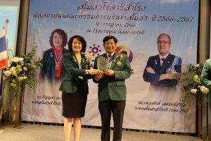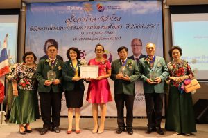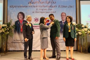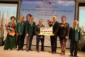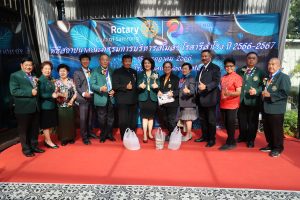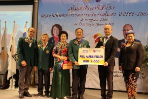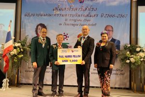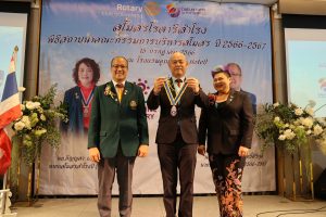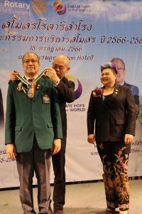 หลังจากนั้น ได้รับเกียรติจาก ผวภ.ดร.ชัชวาล และแอนน์ อน.พนิดา เตละวาณิชย์ ผู้ว่าการภาค 3330 โรตารีสากล ปีโรตารี 2566-2567 ประดับเหรียญให้กับ