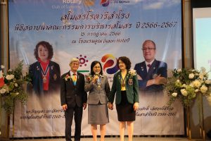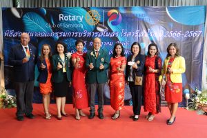 ลั่นฆ้องเปิดงานพิธีสถาปนานายกและผู้บริหารสโมสรโรตารีสำโรง ปีโรตารี 2566-2567