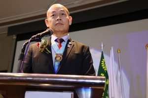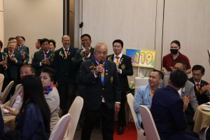 นายกสโมสรโรตารีสำโรง ปีโรตารี 2565-2566 พร้อมประดับเหรียญนายกผ่านพ้น โดยมีนายกสโมสรโรตารีต่างสโมสร รุ่น 118 ร่วมแสดงความยินดี