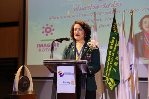 ต่อมาคณะกรรมการการจัดงานได้นำเสนอผลงานของ นายกภิญญดา ปกาสิตธนัน นายกสโมสรโรตารีสำโรง ภาค 3330 โรตารีสากล