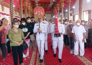 เมื่อเวลา 08.30 น. ของวันที่ 1 สิงหาคม 2566 เจ้าหน้าที่วัฒนธรรมจังหวัดสมุทรปราการ อัญเชิญพัดรองที่ระลึกพระราชทาน เทียนพรรษาพระราชทาน ในทูลกระหม่อมหญิงอุบลรัตนราชกัญญา สิริวัฒนาพรรณวดี ถวายวัดมหาวงษ์ ตำบลปากน้ำ อำเภอเมือฯ จังหวัดงสมุทรปราการ เนื่องในโอกาสเทศกาลเข้าพรรษา ประจำปี 2566 โดยมี นายอัครนันท์ พาณิชย์พิศาล เป็นประธานจุดธูปเทียนบูชาพระรัตนตรัย เปิดกรวยถวายราชสักการะเบื้องหน้าพระฉายาลักษณ์ทูลกระหม่อมหญิงอุบลรัตนราชกัญญา สิริวัฒนาพรรณวดี และอ่านหมายกำหนดการ พร้อมกล่าวคำถวายเทียนพรรษาพระราชทาน จากนั้นได้อัญเชิญพัดรองที่ระลึกพระราชทาน เทียนพรรษาพระราชทาน ถวายแด่พระครูปลัดจริยวัฒน์ ผู้ช่วยเจ้าอาวาสวัดมหาวงษ์ เพื่ออัญเชิญไปจุดบูชาพระรัตนตรัย นับเป็นพระกรุณาธิคุณ ยังความปลาบปลื้มแก่คณะสงฆ์ และคณะศรัทธาวัดมหาวงษ์ พร้อมด้วยนางธัญยธรณ์ พาณิชย์พิศาล คณะกรรมการวัด อุบาสก อุบาสิกา ศิษยานุศิษย์วัดมหาวงษ์ และพ่อค้าประชาชน ชาวตำบลปากน้ำ ร่วมถวายจตุปัจจัยเครื่องไทยธรรม พระสงฆ์กล่าวสัมโมทนียกถา และอนุโมทนา กรวดน้ำ รับพร