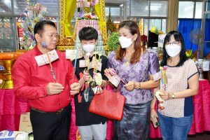 เมื่อเวลา 08.30 น. ของวันที่ 2 สิงหาคม 2566 ที่ศาลาคุณแม่วงษ์ ทับประเทือง วัดศรีจันทร์ประดิษฐ์ ต.บางปูใหม่ อ.เมือง จ.สมุทรปราการ คณะพระภิกษุสงฆ์วัดศรีจันทร์ประดิษฐ์ ร่วมกับคณะกรรมการ อุบาสก และอุบาสิกา วัดศรีจันทร์ประดิษฐ์ จัดพิธีทำบุญถวายภัตตาหาร แด่พระสงฆ์ จำนวน 28 รูป เนื่องในวันอาสาฬหบูชา วันเข้าพรรษา พิธีถวายผ้าป่าสามัครคี เทียนพรรษาผ้าอาบน้ำฝน และฟังเทศน์ โดยมี พระมหาสมิทธิ์ โชติโก เจ้าอาวาสวัดศรีจันทร์ประดิษฐ์ เป็นประธานฝ่ายสงฆ์ และมีนายชัยโรจน์ ฤทธิเมธีเศรษฐ์ เฮียพยงค์ แซ่ลิ้ม คณะกรรมการ กต.ตร.สภ.เมืองสมุทรปราการ ประธานบริษัท พี.วาย. ฟู้ด จำกัด หรือหมูหยองโอชา เป็นประธานฝ่ายฆราวาส พร้อมด้วยครอบครัว พนักงาน บริษัท พี.วาย. ฟู้ด จำกัด บริษัท ขายดี เบฟเวอเรจ จำกัด ตลอดจนพ่อค้าประชาชนชาวตำบลบางปูใหม่ และตำบลใกล้เคียง ร่วมกันถวายผ้าป่าสามัครคี เทียนพรรษาและผ้าอาบน้ำฝน แด่พระสงฆ์ ได้กระทำขึ้นก่อนเทศกาลเข้าพรรษาแด่พระภิกษุสงฆ์ในพุทธศาสนาทุกปี เพื่อให้พระสงฆ์จุดบูชาพระรัตนตรัย เป็นเวลา 3 เดือน สมัยก่อนเทียนพรรษามีความสำคัญเป็นอย่างมากเพราะพระสงฆ์ต้องใช้จุดให้แสงสว่างในการศึกษาพระธรรมวินัย เป็นการสืบทอดพระพุทธศาสนาให้คงอยู่ และเป็นที่พึ่งทางจิตใจของพุทธศาสนิกชน เสริมความเป็นสิริมงคลให้กับตนเองและครอบครัว