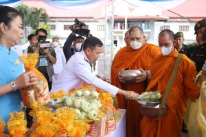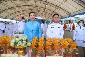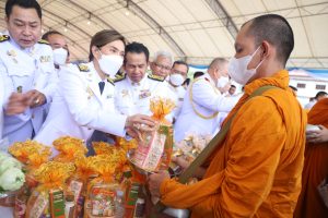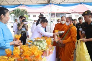 จากนั้นผู้ว่าราชการจังหวัดสมุทรปราการ นำคณะข้าราชการ ทหาร ตำรวจ ประชาชน นักเรียน นักศึกษา และกลุ่มพลังมวลชน ร่วมพิธีทำบุญตักบาตร ข้าวสาร อาหารแห้งแด่พระสงฆ์ จำนวน 92 รูป เพื่อถวายเป็นพระราชกุศล เนื่องในโอกาสวันเฉลิมพระชนมพรรษา 91 พรรษา สมเด็จพระนางเจ้าสิริกิติ์ พระบรมราชินีนาถ พระบรมราชชนนีพันปีหลวง 12 สิงหาคม 2566