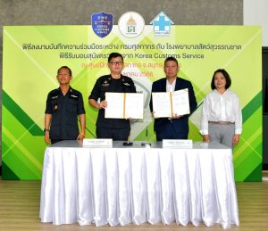 กรมศุลกากรได้รับเกียรติจากคุณพิพิธ พิชัยศรทัต กรรมการผู้จัดการ บริษัท มงคลชัยพัฒนา จำกัด ผู้บริหารโรงพยาบาลสัตว์สุวรรณชาด (โครงการพัฒนาส่วนพระองค์) ในพระบรมราชูปถัมภ์ ลงนามในบันทึกความร่วมมือในการช่วยเหลือ ดูแลรักษา และตรวจสุขภาพให้แก่สุนัขตรวจค้น ระหว่าง กรมศุลกากร กับ โรงพยาบาลสัตว์สุวรรณชาด (โครงการพัฒนาส่วนพระองค์) ในพระบรมราชูปถัมภ์ ทำให้มั่นใจได้ว่า สุนัขตรวจค้นจะมีสุขภาพที่ดีและแข็งแรง สามารถปฏิบัติงานได้อย่างมีประสิทธิภาพและประสิทธิผล