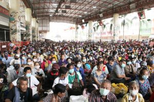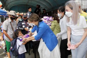 จากนั้น เวลา 15.00 น. นางสาวนันทิดา แก้วบัวสาย นายกองค์การบริหารส่วนจังหวัดสมุทรปราการ เดินทางมาจุดเทียน ธูป สักการะหลวงปู่ไต้ฮงกง เพื่อความเป็นสิริมงคล และเป็นประธานในพิธีแจกข้าวสาร อาหารแห้ง ให้แก่ครอบครัวผู้ยากไร้ และผู้ด้อยโอกาส เนื่องในงานทิ้งกระจาด ประจำปี 2566 โดยมี นายเอนกพงศ์ คูณทรัพย์สิน ประธานมูลนิธิร่วมกุศล สมุทรปราการ กล่าวรายงาน ถึงวัตถุประสงค์ของการจัดงาน พร้อมด้วย นางสาวชนม์ทิดา อัศวเหม ประธานอาสาสมัครพิทักษ์ทรัพยากรธรรมชาติและสิ่งแวดล้อม หมู่บ้าน (ทสม.) จังหวัดสมุทรปราการ นางประภาพร อัศวเหม นายกเทศมนตรีนครสมุทรปราการ “เฮียเอี๋ยว”สุดใจ จิรยาภากร ประธานที่ปรึกษา กต.ตร.จังหวัดสมุทรปราการ พ.ต.อ.นพดล ช่างเรือน ผกก.สภ.เมืองสมุทรปราการ พร้อมด้วย คณะที่ปรึกษา กต.ตร.จังหวัดสมุทรปราการ ข้าราชการตำรวจ สภ.เมือง สมุทรปราการ ตลอดจน คณะผู้บริหาร สมาชิกสภา อบจ. สมาชิกสภาเทศบาลนคร หัวหน้าส่วนราชการ คณะกรรมการสมาคมประมงจังหวัดสมุทรปราการ ที่ปรึกษา คณะกรรมการมูลนิธิ และเจ้าหน้าที่มูลนิธิร่วมกุศล สมุทรปราการ ร่วมกันแจกข้าวสาร ถุงละ 5 กิโลกรัม และอาหารแห้ง ขนม ให้แก่ครอบครัวผู้ยากไร้ และผู้ด้อยโอกาส คนละ 1 ถุง รวมทั้งสิ้นกว่า 3,500 ถุง และเงิน อีกคนละ 100 บาท ซี่งได้รับการสนับสนุนจาก กต.ตร จังหวัดสมุทรปราการ สถานีตำรวจ สภ.เมืองฯ และ นางสาวนันทิดา แก้วบัวสาย โดยบรรยากาศภายในงานต่างก็มีรอยยิ้มทั้งผู้รับและผู้ให้