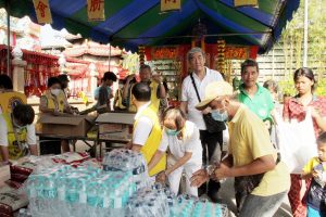 เมื่อเวลา 16.00 น.วันที่ 23 สิงหาคม 2566 ที่ โรงเจเอี่ยงเม้งเก็ง พระโพธิสัตว์กวนอิม สำโรง ซอยแสงชัย ตำบลสำโรง อำเภอพระประแดง จังหวัดสมุทรปราการ นายปิยะศักดิ์ พู่พวงโชติภัทร์ ประธานกรรมการโรงเจเอี่ยงเม้งเก็ง ร่วมกับคณะกรรมการโรงเจ และคณะศิษยานุศิษย์ โรงเจเอี่ยงเม้งเก็ง จัดงานทิ้งกระจาด (ซิโกว) ประจำปี 2566 ระหว่างวันที่ 21-23 สิงหาคม 2566 ตามประเพณีปฏิทินจีน เดือน 7 ของทุกๆ ปี และปฏิบัติต่อเนื่องเรื่อยมาตลอดระยะเวลา 40 ปี ของการก่อตั้งโรงเจ เอี่ยงเม้งเก็ง สำโรง โดยคุณแม่รัตนา รุ่งอโนทัยขจร อดีตเจ้าสำนัก และผู้ก่อตั้งโรงเจ เอี่ยงเม้งเก็ง โดยการทิ้งกระจาดนี้ชาวจีนเรียกกันว่าซีโกว แปลว่าการให้ทานแก่วิญญาณไร้ญาติ หรือโพวโต่ว แปลว่าการโปรดสัตว์โดยทั่วไป เป็นพิธีกรรมของจีนที่มีที่มาจากพระพุทธศาสนา โดยในวันแรกมีคณะสวดมนต์ของโรงเจ เอี่ยงเม้งเก็ง สำโรง มาประกอบพิธีเปิดมณฑลพิธี และค่ำคืนของวันที่สอง ทางโรงเจได้เชิญ คณะสวดมนต์ จากโรงเจเป๋าเก็งเต้ง อ่อนนุช โรงเจมหาโพธิสัตว์กวนอิม แขวงแสมดำ และโรงเจ ไต่กวง ประตูน้ำ มาร่วมสาธยายพระสูตร และนำเดินธูป ส่วนวันที่สามทางโรงเจ ได้นิมนต์คณะสงฆ์จีนนิกาย จากวัดโพธิทัตตาราม อำเภอศรีราชา จังหวัดชลบุรี มาประกอบพิธี ซิโกว โพวโต่ว ซึ่งนับว่าเป็นประเพณีที่ยิ่งใหญ่ ร่วมไปกับการแจกทานให้ผู้ที่ยากไร้ งานทิ้งกระจาดจึงต้องทำทั้งสองส่วน ทำบุญกันในโรงเจก่อน โดยพระสงฆ์จีน แล้วจึงมาแจกสิ่งของให้แก่ผู้ที่ยากไร้ ดังนั้น เทศกาลทิ้งกระจาด จึงเป็นเทศกาลที่ครบถ้วนทั้งทำบุญและทำทาน