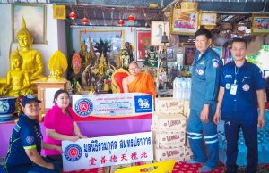 มูลนิธิร่วมกุศลสมุทรปราการ โดยท่านประธานฯนายเอนกพงศ์ คูณทรัพย์สิน มอบให้รองประธานฯฝ่ายกิจกรรม-ฝ่ายบุคคล/บริหารงานกู้ชีพน.ส.ปิยนุช พาณิชย์พิศาล และกรรมการบริหารฝ่ายบรรเทาสาธารภัยนายวสุ เผ่าตำรวจ และเจ้าหน้าที่ฝ่ายสังคมสงเคราะห์/ฝ่ายสื่อสารองค์กร ในนามมูลนิธิฯ เดินทางไปมอบน้ำดื่มตราสิงห์และน้ำสปาร์คคลิ้งลำไยลองก้า ตรา(P80)มอบให้องค์กรสาธารณกุศล วัดต่างๆ ซึ่งทำกิจกรรมเพื่อชุมชนต่อเนื่องจากเทศกาลทิ้งกระจาด งานบุญแจกทานอันยิ่งใหญ่ โดยมีรายละเอียดดังนี้ 1.วัดทองคง น้ำดื่มสิงห์ 40แพ็ค,น้ำสปาร์คคลิ้งลำไยลองก้า 6 ลัง 2.วัดราษฎร์โพธิ์ทอง น้ำดื่มสิงห์ 40 แพ็ค,น้ำสปาร์คลิ้งลำไยลองก้า 6 ลัง 3.วัดศรีจันทร์ประดิษฐ์ น้ำดื่มสิงห์ 50 แพ็ค,น้ำสปาร์คคลิ้งลำไยลองก้า 15 ลัง และ 4.วัดมหาวงษ์ น้ำดื่มสิงห์ 50 แพ็ค,น้ำสปาร์คคลิ้งลำไยลองก้า 15 ลัง