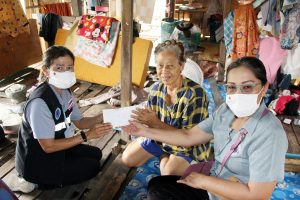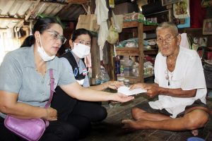 เจ้าหน้าที่ อสม. ลงพื้นที่ตำบลท้ายบ้าน ท้ายบ้านใหม่ มอบเงินสนับสนุนโครงการ“โรบินสันปันน้ำใจ ช่วยเหลือผู้พิการและผู้ป่วยติดเตียง