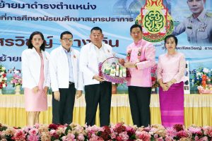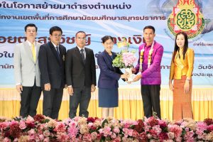 รองเลขาธิการคณะกรรมการการศึกษาขั้นพื้นฐาน แสดงความยินดีกับผู้อำนวยการฯ และรองผู้อำนวยการ สพม.สมุทรปราการ