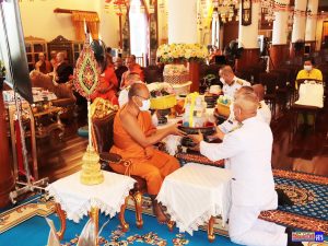 พิธีเชิญผ้าไตรและเครื่องสังฆทานพระราชทาน ภัตตาหารพระราชทาน ถวาย แด่ พระเดชพระคุณ พระราชวัชรบัณฑิต (ประนอม ธมฺมาลงฺกาโร) เจ้าอาวาสวัดจากแดง อ.พระประแดง จ.สมุทรปราการ