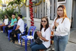 เมื่อเวลา 07.00 น.ของวันที่ 31 ธ.ค.66 ที่บริเวณหน้าที่ทำการผู้ใหญ่บ้าน หมู่ 6 ซ.3 การเคหะสมุทรปราการ ต.ท้ายบ้านใหม่ อ.เมือง จ.สมุทรปราการ ผู้ใหญ่สมเกียรติ ทองเหลือ ผู้ใหญ่บ้าน หมู่ 6 ต.ท้ายบ้านใหม่ พร้อมด้วย สท.ถนอมศรี ทองเหลือ สมาชิกสภาเทศบาลตำบลบางปู ผู้ช่วยสุภาพ รอดพงษ์ ผู้ช่วยสุนิษา โชติธนสุวรรณ์ ผู้ช่วยผู้ใหญ่บ้านหมู่ 6 ต.ท้ายบ้านใหม่ และคณะกรรมการ ทีมงานกลุ่มรักษ์หมู่ 6 ต.ท้ายบ้านใหม่ จัดกิจกรรมวันส่งท้ายปีเก่า-ต้อนรับปีใหม่ ทำบุญตักบาตรข้าวสาร อาหารแห้ง พระสงฆ์เพื่อความเป็นสิริมงคลในวันขึ้นปีใหม่ไทย