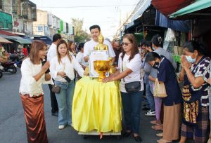โดยได้นิมนต์หลวงพ่อน้อย พระครูโกศลพัฒนากร เจ้าอาวาสวัดโสธรนิมิตต์ และคณะพระสงฆ์วัดโสธรนิมิตต์ จำนวน 9 รูป ฉันภัตตาหารเช้า ก่อนออกเดินรับบิณฑบาตรจากหน้าที่ทำการผู้ใหญ่บ้าน หมู่ 6 เข้าตลาดการเคหะสมุทรปราการ โดยมี นายวรพร อัศวเหม ผู้เชี่ยวชาญประจำตัวสภาผู้แทนราษฎร และพ่อค้า ประชาชน กลุ่มผู้ใช้แรงงาน ออกมาร่วมพิธีทำบุญตักบาตร เนื่องในโอกาสเทศกาลส่งท้ายปีเก่าต้อนรับปีใหม่ 2567 กันอย่างคึกคัก