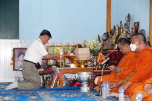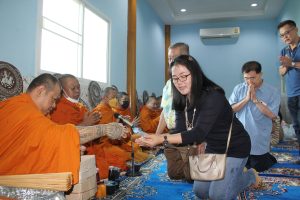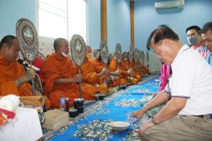โดยทางครอบครัวเดชนที ได้นิมนต์พระสงฆ์ จากวัดมหาวงษ์ จำนวน 9 รูป นำโดยพระครูสมุห์ปิยะ ปิยะวัณโณ ผู้ช่วยเจ้าอาวาสวัดมหาวงษ์ เจริญพระพุทธมนต์ ครอบครัวเดชนที และคณะกรรมการศาลเจ้าแม่ตะเคียนทอง แขกผู้มีเกียรติ แลผู้เข้าร่วมพิธี ช่วยกันถวายภัตตาหาร ปิ้นโต แด่พระสงฆ์ พร้อมด้วยจตุปัจจัยไทยธรรม พระสงฆ์ให้ศีล กรวดน้ำ รับพร สำหรับสิ่งของที่นำมาแจกในปีนี้ ประกอบไปด้วยเสื้อยืดสีขาว 1 ตัว ขนมถุงใหญ่ 1 ชุด บะหมี่กึ่งสำเร็จ 1ชุด ข้าวสาร 1 ถุง และน้ำดื่ม ให้กับประชาชน ในพื้นที่รวมจำนวนกว่า 800 ชุด