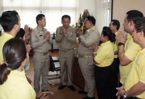 เมื่อเวลา 09.30 น ของวันที่ 29 มกราคม 2567 ที่บริเวณ ชั้น 2 ที่ว่าการอำเภอเมือง จังหวัดสมุทรปราการ นาวาเอก อนุศักดิ์ นาคทิม นายกเทศมนตรีตำบลบางเมือง พร้อมด้วยนายชูชาติ สุขสมบุญ ที่ปรึกษานายกเทศมนตรีตำบลบางเมืองนายเลิศชาย ยั่งยืน รองนายกเทศมนตรีตำบลบางเมือง นายจักรกฤษณ์ ยั่งยืน ประธานสภาเทศบาลตำบลบางเมือง และสมาชิกสภาเทศบาลตำบลบางเมือง ข้าราชการในสังกัด เข้ามอบกระเช้าดอกไม้ และพระบูชารูปเหมือนสมเด็จ พุฒาจารย์ โตพรหมรังสี วัดโบสถ์ แสดงความยินดีกับนายวัฒนา เจริญจิตร อดีตนายอำเภอบางพลี ในโอกาสย้ายมาดำรงตำแหน่งนายอำเภอมือง สมุทรปราการ