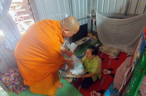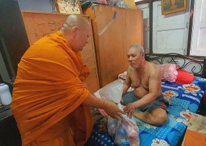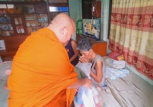 คณะพระภิกษุสงฆ์ วัดพุทธภาวนาราม ลงพื้นที่เยี่ยมบ้านเพื่อดูแลส่งเสริมสุขภาพและสร้างขวัญกำลังใจแก่ผู้ป่วยติดบ้าน ติดเตียงและผู้พิการ 2 ชุมชน ตำบลท้ายบ้านใหม่