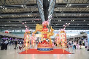 เมื่อวันที่ 5 กุมภาพันธ์ 2567 ท่าอากาศยานสุวรรณภูมิ (ทสภ.) ส่งมอบความสุขและร่วมอวยพรให้ผู้โดยสารและผู้ใช้บริการ เนื่องในโอกาสวันขึ้นปีใหม่ของชาวจีน ซึ่งในปีนี้ตรงกับปีนักษัตรมะโรง โดย ทสภ. ได้ตกแต่งพื้นที่ภายใต้แนวคิดนำพญามังกร