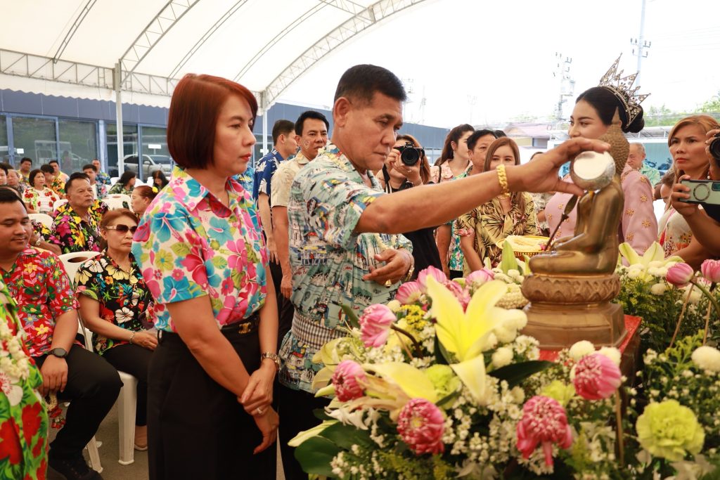 โดยมี นายฉะโอด รุ่งเรือง ที่ปรึกษานายกองค์การบริหารส่วนจังหวัดสมุทรปราการ นายสมควร ชูไสว ประธานสภา อบจ.สมุทรปราการ ซึ่งเป็นผู้ใหญ่ใน อบจ.ร่วมให้รดน้ำดำหัวขอพรด้วย โดยมีนายอัครวัฒน์ อัศวเหม นายวรพร อัศวเหม นายต่อศักดิ์ อัศวเหม รองนายก อบจ.สมุทรปราการ นายฐาปกรณ์ กุลเจริญ อดีต ส.ส.สมุทรปราการ เขต 6 พรรคพลังประชารัฐ นายสิทธิไชย เชื้อไทย นายพิษณุวัส คำงาม เลขานุการ นายก อบจ.สมุทรปราการ ตลอดจนคณะผู้บริหาร หัวหน้าส่วนราชการหน่วยงานองค์กรปกครองส่วนท้องถิ่น บุคลากรในสังกัด อบจ.สมุทรปราการ และกลุ่มสมุทรปราการก้าวหน้า เข้าร่วมรดน้ำดำหัวขอพร เพื่อเป็นการแสดงความรักความเคารพนับถือและเป็นการขอพรเพื่อความเป็นสิริมงคลแก่ชีวิต สร้างขวัญและกำลังใจในการทำงาน อีกทั้งยังเป็นการอนุรักษ์วัฒนธรรมประเพณีที่ดีงามให้คงอยู่สืบไป
