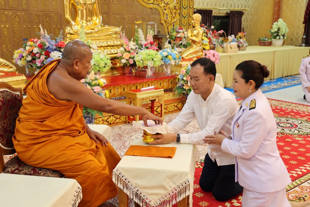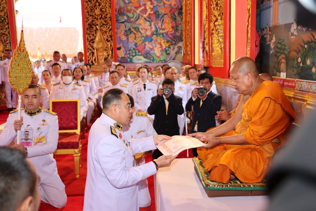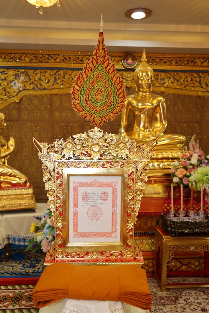 พระบาทสมเด็จพระเจ้าอยู่หัว ทรงพระกรุณาโปรดเกล้าโปรดกระหม่อมให้ พลเอก กัมปนาท รุดดิษฐ์ องคมนตรี เชิญสัญญาบัตร พัดยศ และผ้าไตร ถวายแด่ พระวชิรคณาทร (จรูญ ฐานธมฺโม)เจ้าอาวาสวัดบางพลีใหญ่กลาง