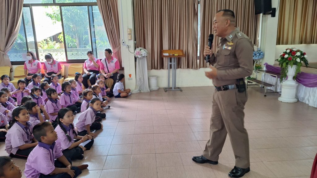 –เมื่อเวลา 10.00 น.วันที่ 5 มิ.ย.68 ที่โรงเรียนคลองนาเกลือน้อย (กลิ่นอยู่อุปถัมภ์) หมู่ที่ 10 ต.ในคลองบางปลากด อ.พระสมุทรเจดีย์ จ.สมุทรปราการ นาง รัชดาวัลย์ ศรีสวัสดิ์ ผู้อำนวยการฯ เป็นประธานเปิดกิจกรรมซักซ้อมแผนเผชิญเหตุความปลอดภัยในสถานศึกษา “หนี ซ่อน สู้” (Run – Hide – Fight) ซึ่งมี นาย ณัฐพล สารีโพธิ์ หัวหน้าโครงการสถานศึกษาปลอดภัยและส่งเสริมสวัสดิภาพความปลอดภัยของนักเรียน กล่าวถึงวัตถุประสงค์การจัดกิจกรรม ทั้งนี้ได้รับการสนับสนุนทีมวิทยากรจาก สภ.พระสมุทรเจดีย์ โดย พ.ต.ท.จตุภพ รามนัฏ รอง.ผกก.ป. ร.ต.ท.สมาน สนทาหงส์ รอง.สวป.ชุมชนสัมพันธ์ เจ้าหน้าที่ตำรวจสายตรวจ สภ.พระสมุทรเจดีย์ ร่วมบรรยายพร้อมให้ความรู้แก่เด็กนักเรียนของโรงเรียน