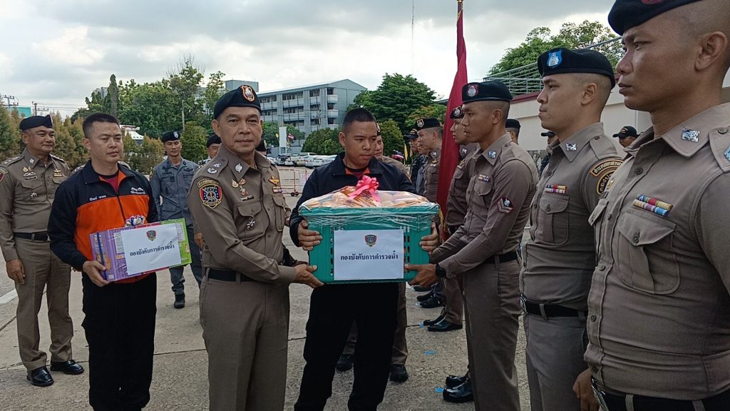 พล.ต.ต. เศรษฐสิริ นิพภยะ ผู้บังคับการตำรวจน้ำ พร้อมด้วย พ.ต.อ.ธรากร เลิศพรเจริญ