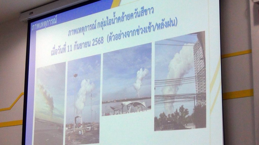 ปลัดจังหวัดสมุทรปราการ เข้ารับฟังโรงไฟฟฟ้าพระนครใต้ เสนอข้อมูลชี้แจงกรณีเกิดกลุ่มไอน้ำคล้ายควันสีขาว จากหอหล่อเย็นโรงไฟฟ้าพระนครใต้ เมื่อช่วงเช้าวันที่ 11 กันยายน 2568 ที่ผ่านมา