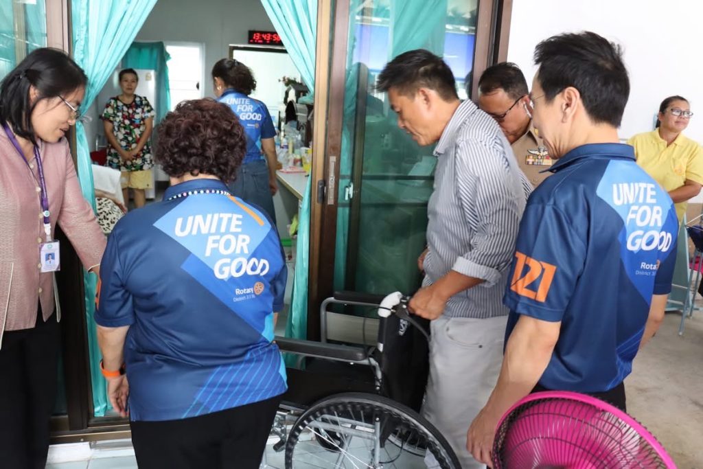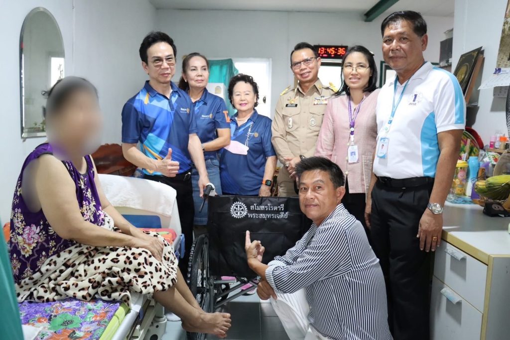 อบต.ในคลองบางปลากด ร่วมมือกับสโมสรโรตารีพระสมุทรเจดีย์ ลงพื้นที่มอบรถเข็นผู้ป่วย (วีลแชร์) ให้แก่ผู้สูงอายุ ผู้ป่วยในเขตพื้นที่ตำบลในคลองบางปลากด เพื่อยกระดับคุณภาพชีวิตให้ดีขึ้น