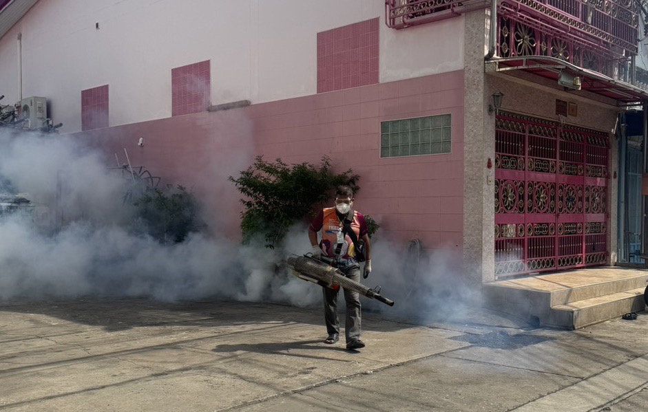 ซึ่งการพ่นหมอกควันพื่อกำจัดยุงลาย ในครั้งนี้ เป็นการตัดวงจรการระบาดของโรคไข้เลือดออก โดยเน้นการกำจัดยุงตัวแก่ที่มีเชื้อโรค และเป็นการป้องกันไม่ให้ยุงแพร่เชื้อไปยังคนในพื้นที่ การดำเนินการดังกล่าวจะช่วยลดปริมาณยุงในระยะสั้น และเป็นการชะลอการแพร่ระบาดของโรคในชุมชน โดยมีการประสานกับทีม อสม.ผู้นำชุมชน และศูนย์บริการสาธารณสุขในพื้นที่ เพื่อแจ้งให้ประชาชนในชุมชนได้รับทราบลวงหน้า 1 วัน ก่อนปฏิบัติงานพ่นหมอกควันกำจัดยุงลาย