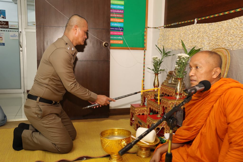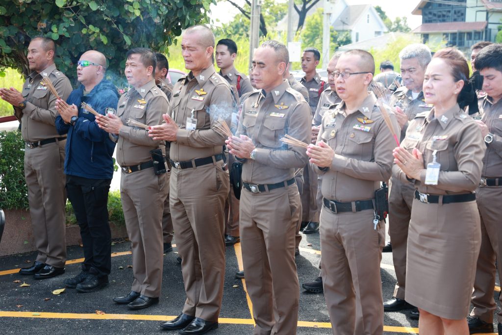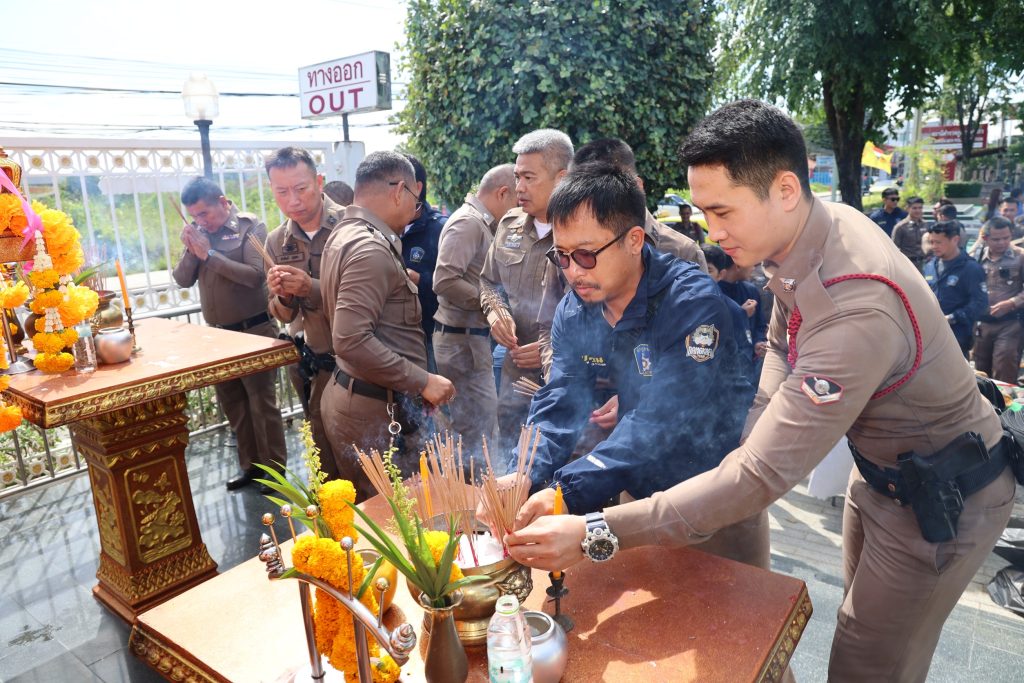 สภ.บางแก้ว จัดงานวันตำรวจ นำข้าราขการตำรวจกล่าวคำสัตย์ปฎิญาน/ไหว้ศาลพระภูมิเจ้าที่/ไหว้ศาลตายาย ประกอบพิธีทำบุญถวายภัตตาหารเพลแด่พระสงฆ์ 9 รูป เพื่อความเป็นสิริมงคล